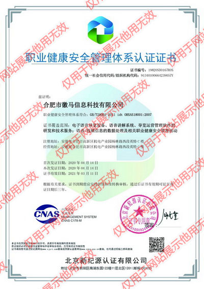 2020职业健康体系证书