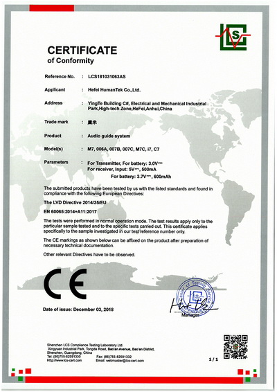 自助讲解设备CE证书